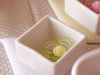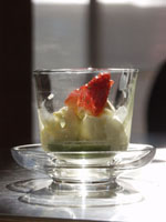 | そしてティータイム、今回は3種の手まり寿司をご用意しました。 紅茶は、今が旬のディンブラ。2004年新茶です。今年初めてのレッスンでしたので、どうしても新茶をご紹介したくて。手まり寿司と新鮮な紅茶が違和感なく頂けましたよね。 デザートは、アイスクリームに熱々の抹茶のソースをかけて頂きました。抹茶アイスとはまた違う、抹茶の風味がしっかり生きた美味しくて簡単デザート!お客様の前でサーブすれば、レストランさながらに楽しめますよ。 |