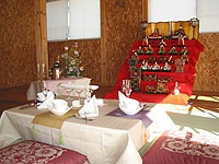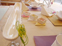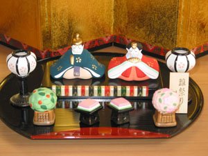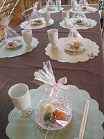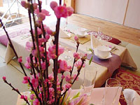 | 2004年初めてのテーブルレッスンが行われました。 今回のテーマは「Girls Day」、女性達が集まる雛祭りのテーブルです。 少し緊張した面持ちで始まったのは、7段のお雛様を目の前にしていたからかもしれませんね。 みなさま、おひな様を見習って、いつもより少しおすまししていました・・・ |