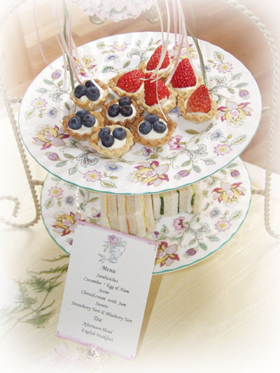 Afternoon Teaを象徴する2段or3段トレイ、これはのちに出て来たとても合理的な食器の一つ 欲しいけど、邪魔になる、でもテーブルレッスンで様々な使い方が出来る事を習うと、やはり欲しい物の一つに・・・ |