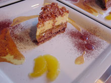 2周年記念のデザートは「オランジュ・ショコラ」です。オレンジのジュレとチョコレートのババロアが絶妙でした。