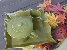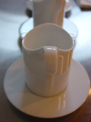 土曜日には間に合わなかったのですが、日曜日に使用したモダンテイストのティーカップ。Tea Timeのテーブルはモダンテイストです。クロスや食器、カトラリー、そして花もモダンテイストにコーディネートしています。