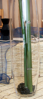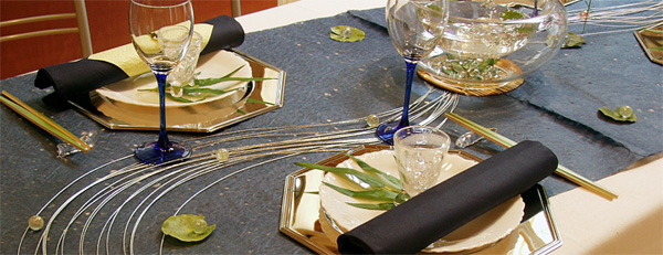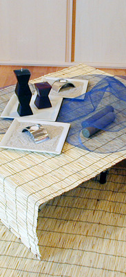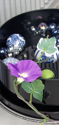 | 今回は「ヌーベル・ジャポネーゼの夏」、想像できない思いで参加された方も多かった事でしょう。 まずは知的な部分から、日本の文化について学びます。なるほど〜と納得する部分、当たり前すぎて知らなかった部分、忘れていた心、新しい発見の連続でした。 「新感覚和風」がテーマですから、日本にまつわる数字について、またお箸の歴史に触れつつ、和食の時のマナーも説明しました。 そして、クリエイティブな創作活動。スダレをかけたローテーブルや、流行りのスクエアのお皿を使った箱庭。テーブルは透かしの和紙で夜空を、水引で天の川を表現。涼しげで落ち着いた雰囲気ですね。 |