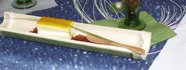 テーブルレッスンの後は、楽しい紅茶の実習です! いきなりこんなセパレートティーを作ってもらって、苦戦していた方、なぜか分からないけど、成功した方。みんなでキャーキャー言いながら作りました。 さらに「絶対失敗しないアイスティーの作り方」の実習も、アイスティーが濁ってしまったり、渋くなってしまったり、毎回味が違うなんて経験ありませんか?その訳を全て解決! みんなでストレートアイスティーを作ったら、綺麗な色、渋みのない紅茶の味と香り。これはみなさん大成功でしたね。 デザートは、ヨーグルトとマンゴのムースケーキ、紅茶のゼリーを添えて。まだ竹の香りが残る器で頂いたら、夏の風が吹いた様な気がしましたね。テーブルや器の魅力を感じて頂けましたか? 意外にも大好評だったのが、ティーシロップ。そのまま舐めた方が、すっきりした甘さで美味しいと言って下さいました♪ |