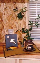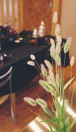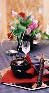 モダンのテーブルは黒、シルバー、赤でまとめて。花は斎花さんのアレンジです。