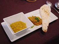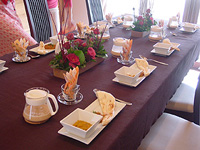 | 私が作ったカレーは2種類、ナンと一緒に召し上がって頂きましたが、さて、チャイとの相性は?? 今回のお花、エキゾチックで、でもモダンで、ステキでしたね。実は、カレーを召し上がって頂く食器にとても悩んでいたのですが、最終的にこの器に決めたら、思った以上にモダンテイスト!それに合わせて、お花を頼みました。いつも無理な注文に答えて下さる斎花さん、本当にありがとうございます。 |