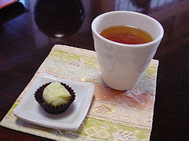 ホワイトチョコでコーティングされた抹茶のガナッシュは、とろける美味しさでしたね。紅茶は、ダージリンオータムナル。