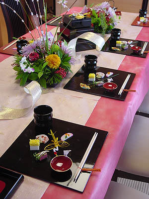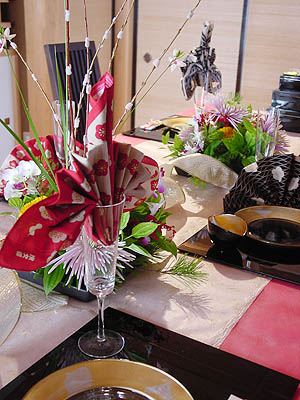 | 2006年12月、6月からしばらくお休みを頂きましたが、久しぶりの佐倉先生のテーブルレッスンが開催されました。 テーブルレッスンの中でも人気のある「お正月」がテーマ。 なぜ人気があるか、やはり日本人だからでしょう。目にしていたり、何気なくやっていた事の意味を知ると、異文化よりもより深く理解出来るのです。更に、初めて聞く内容でもなんとなく分かってしまう。日本人として生まれ育った事実がそこにありましたね。 |
