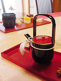 | ティータイム、まずはみりんを使ったお屠蘇を召し上がって頂きました。 そして、簡単なお節料理。 お節料理って作るのも大変だし、作っても食べなかったり、と様々な批評がありますが、やっぱり少しは作りたくなるのが不思議。特別なメニュー、特別な作り方、1年に1度の「正月」という特別な日の為に準備したくなる、それこそが日本人の性かもしれませんね。 それだけ、特別な「正月」という日を、みなさんにとって出来るだけ充実した日にしてもらえたらいいなと思うのです。そして、その年も充実した1年に・・・ デザートは、柚子のゼリー、まだまだ寒さが続きます。風邪を引きませんように。 |