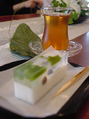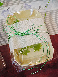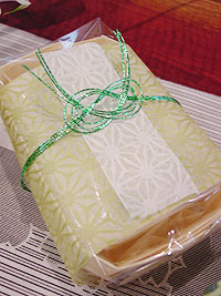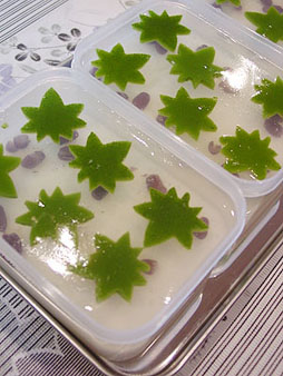 ■和菓子の実習■ 錦羊羹「水面(みなも)」です。 菓子名は私が命名しましたが、和菓子は自分で名前を付けても構わないもの。みなさんオリジナルの名前でもいいんですよ。 淡雪の上に寒天、中に小豆と抹茶寒で作ったもみじを浮かべました。寒天の温度使いが難しかったですが、楽しかったですね。和菓子って使う材料も少なく、工程もそれ程難しくはないのですが、温度とスピード勝負って分かってもらえましたでしょうか? ![]() ![]() |