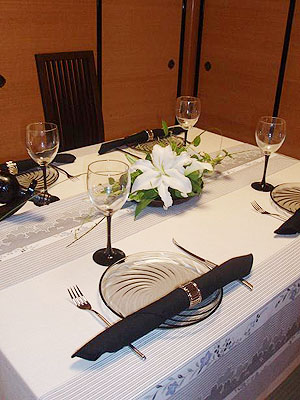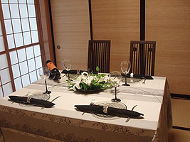 | 「和」のテーブルは、マイナスのコーディネート! 華道、茶道、書道、などなど日本の伝統芸能と同じ、余分な物を省いて省いて、その空間を演出するのもポイントの一つです。 その為、かえってセンスが必要になるのです!! 自分でコーディネートしていると、ついついあれもこれもと並べて空間を埋めたくなってしまうもの・・・。 やはり、何度やっても勉強になる「和」のレッスンだなーと思いました。 |