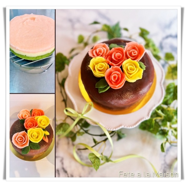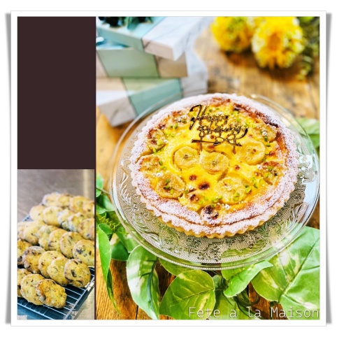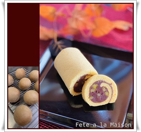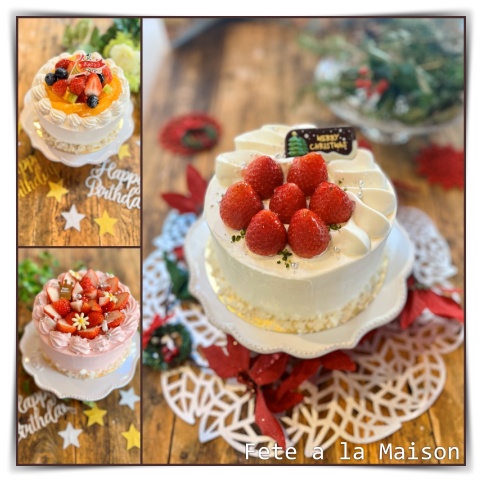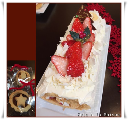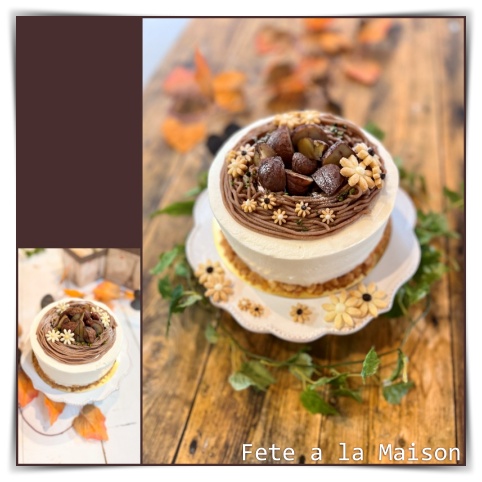 ■モンブラン絞りのデコレーションケーキと花形クッキー
