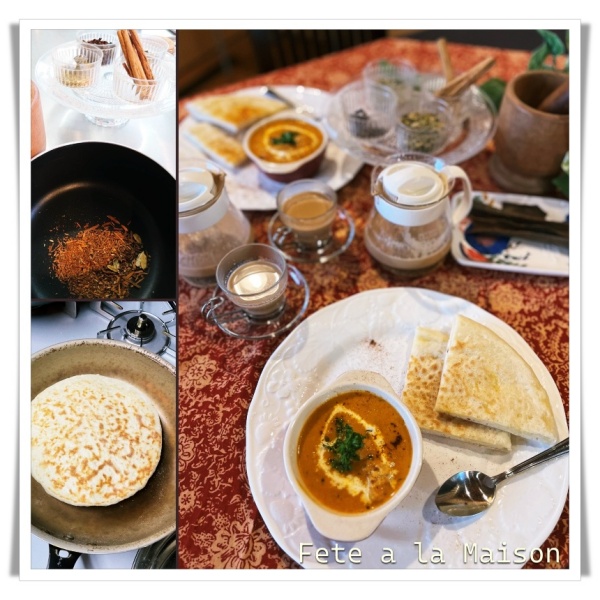 紅茶の産地インドでの紅茶文化、チャイとカレーを楽しみます。タンドリーチキンか手作りナンが選べます。手作りナンが美味しいです。